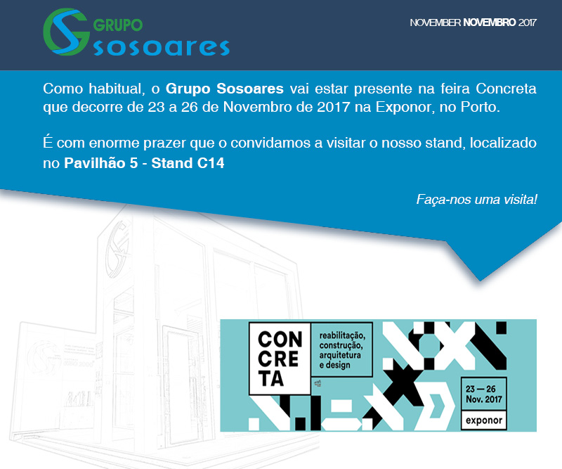 Presença do Grupo Sosoares na feira Concreta 2017, no Porto - de 23 a 26 de Novembro.