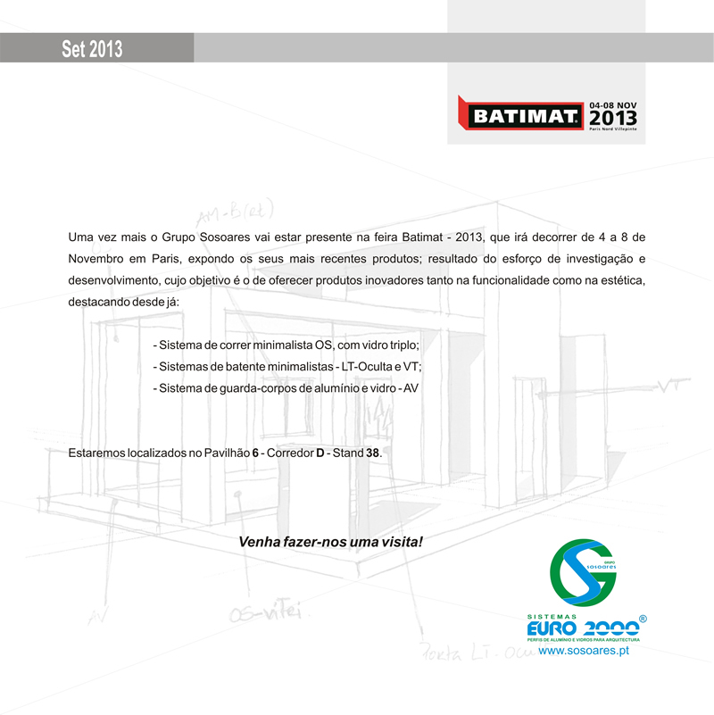 • Participação na feira Batimat 2013 de 4 a 8 de Novembro