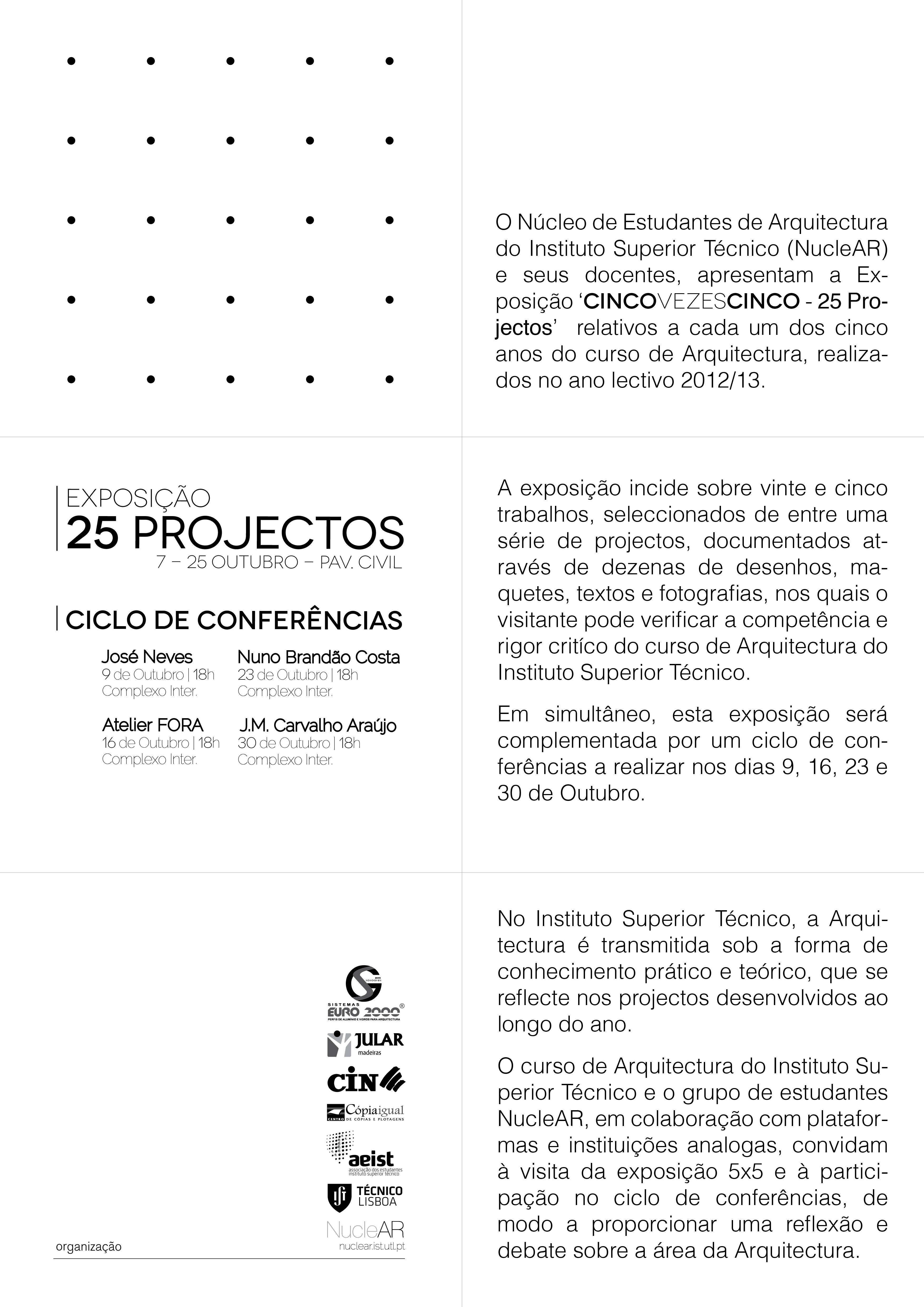 • Participação na feira CincoVezesCinco 2013 de 7 a 25 de Outubro