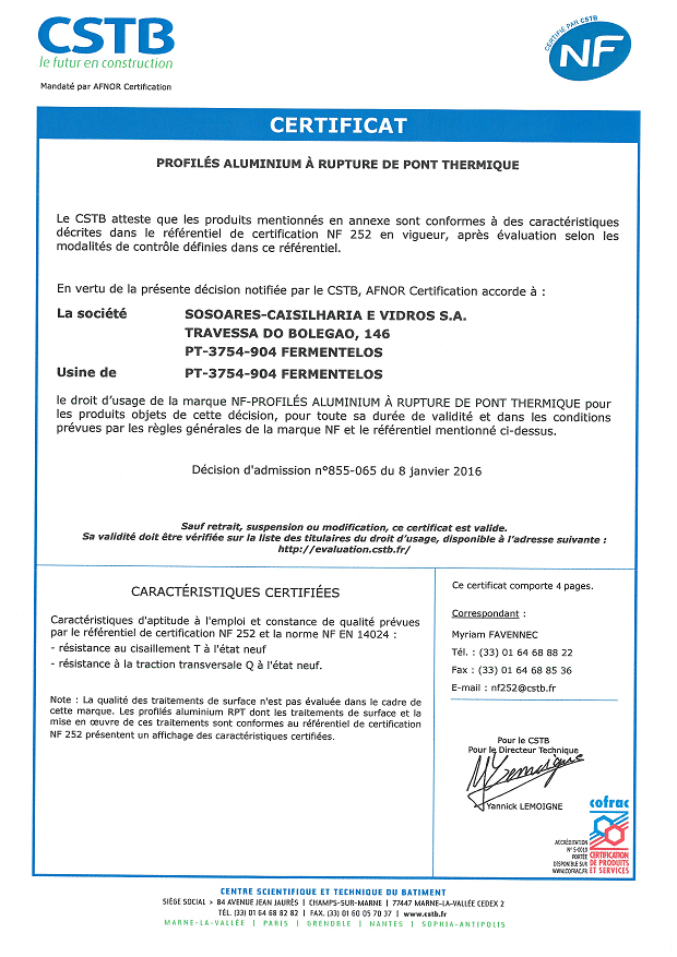 Le Groupe Sosoares obtenu, au début de 2016, la certification NF, résultat d'un travail intensif et rigoureux. Un autre objectif atteint!