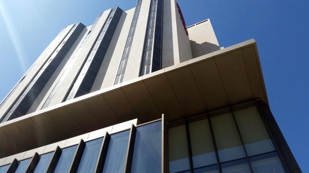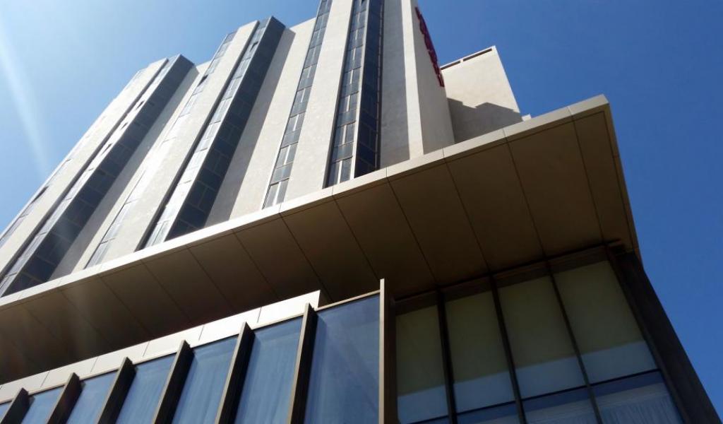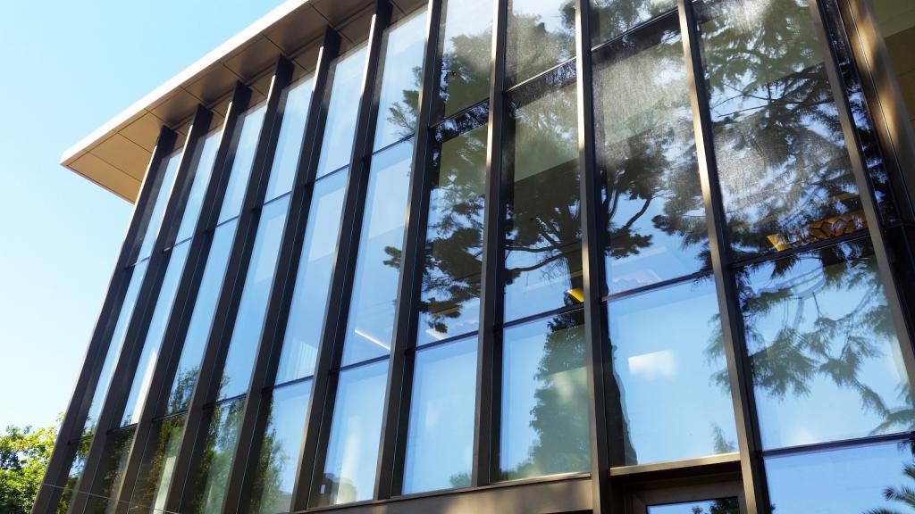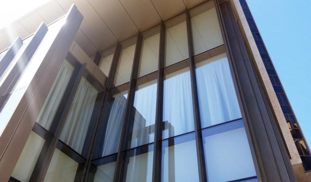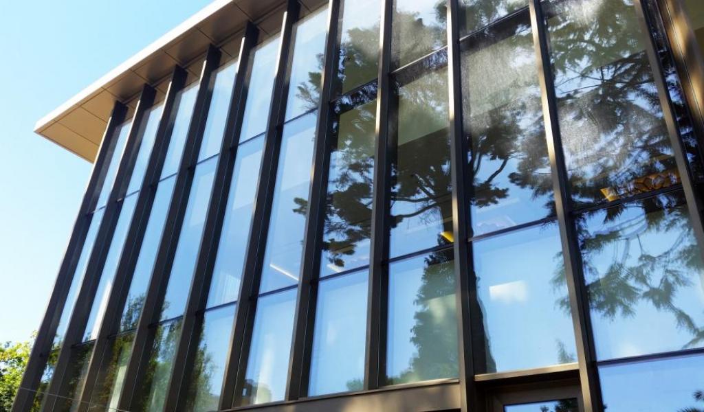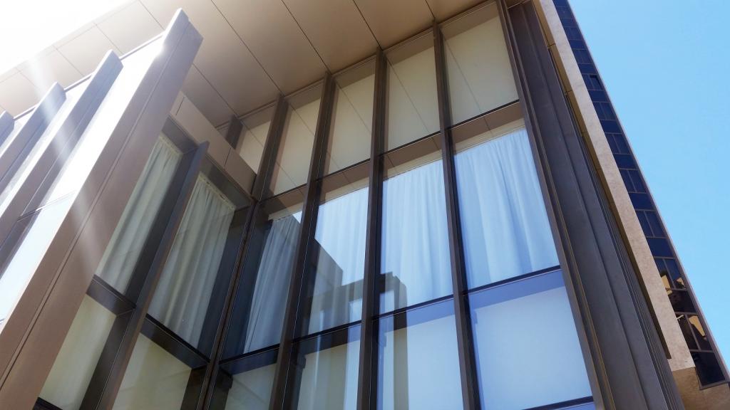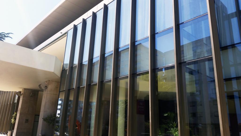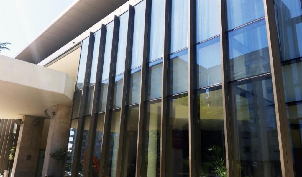 Mur rideau réalisé avec le système FC des Systèmes Euro 2000 de Sosoares qui, en plus de la composition esthétique, assure les conditions thermiques et acoustiques indispensables pour un bâtiment de cette nature.