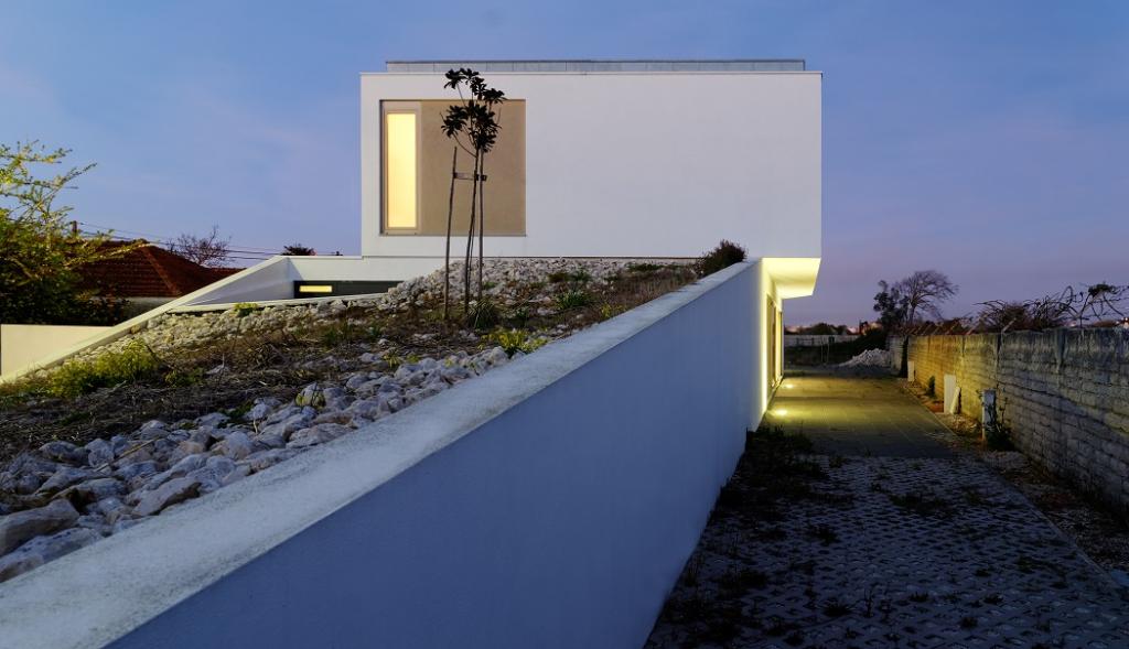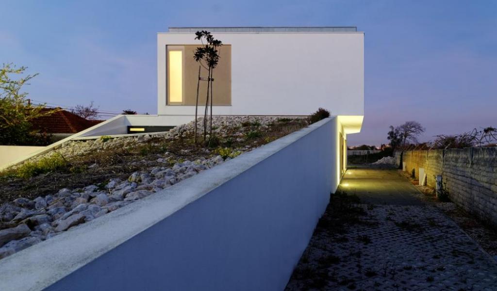 Résidence famillier des lignes simples et modernes, dont les ouvertures permettent une utilisation optimale de la lumière naturelle à l'intérieur, qui sont encadrés par des systèmes en aluminium Euro 2000 Sosoares, qu'apporte le maximum confort, securité et éfficacité énergétique.