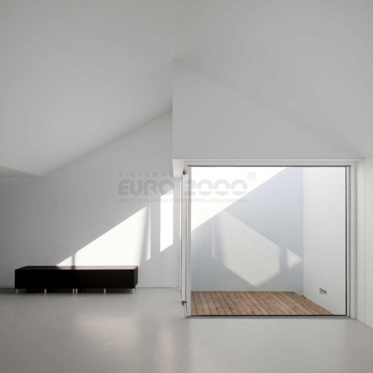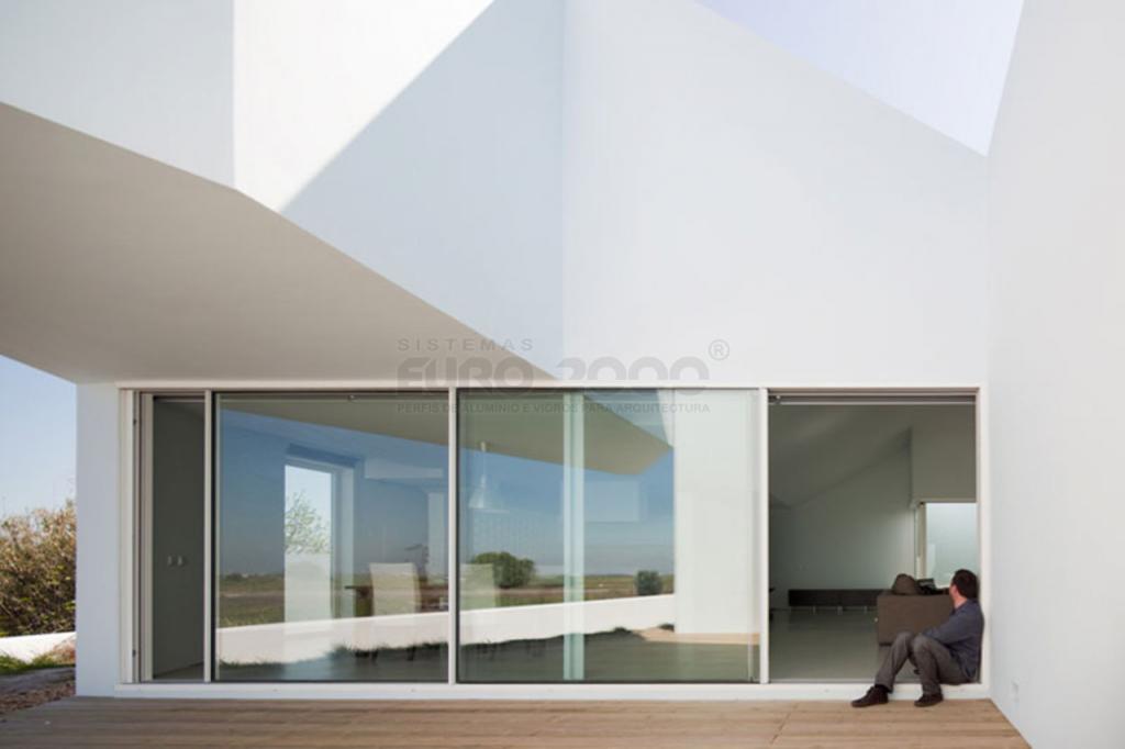 Les systèmes modernes de fenetres minimalistes l'Euro 2000 de Sosoares ont été appliquées dans ce refuge dans Álcacer do Sal, Portugal, caractérisée par l'architecture traditionnelle d'alentejo. L'axonométrie de la maison blanche se développe autour des cours intérieures où nombreux jeux d'ombre et lumière qui contribuent a l'ambiance décontractée de cet espace.