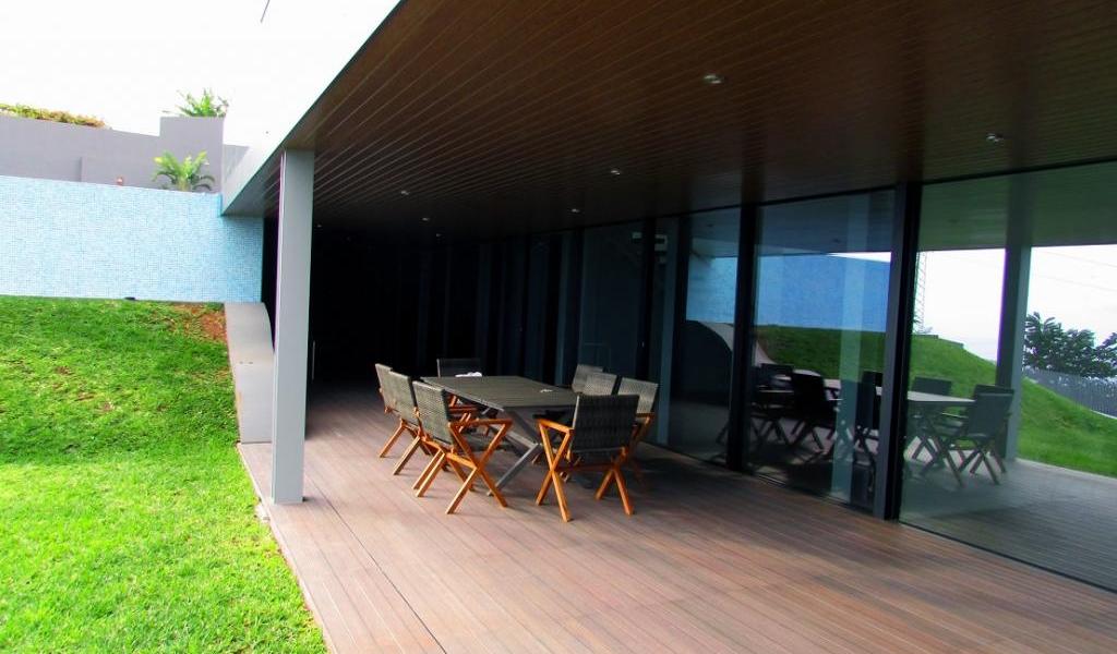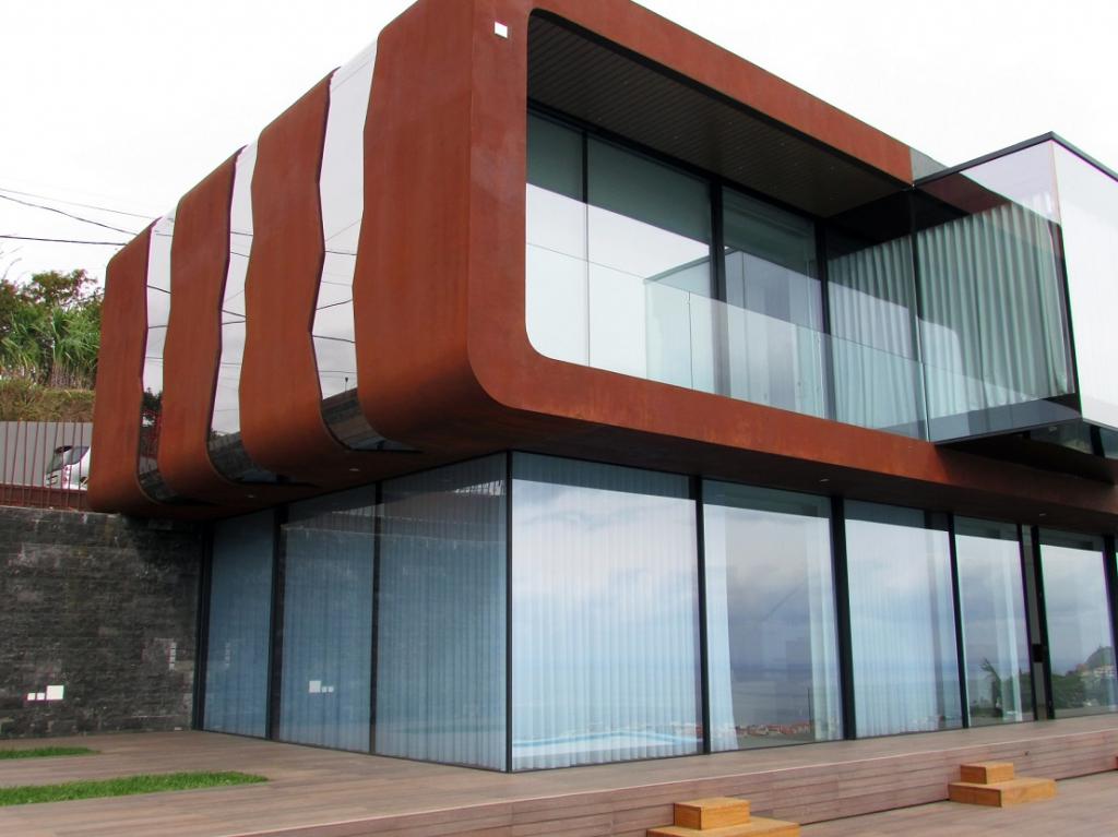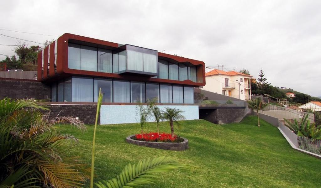 Logement familial situé dans Funchal, Île de Madeira, qui se distingue par son architecture moderne et audacieuse. Doté de grandes vantaux, encadrées avec les systèmes d'aluminium de la marque de l'Euro 2000 de Sosoares, avec la certification CE.