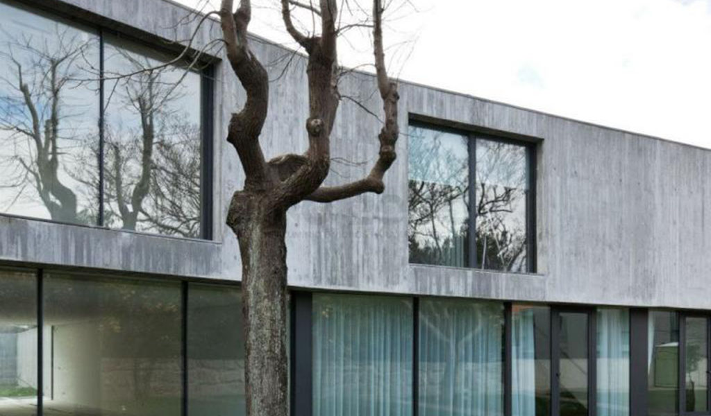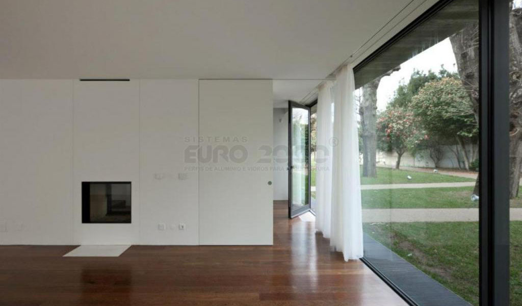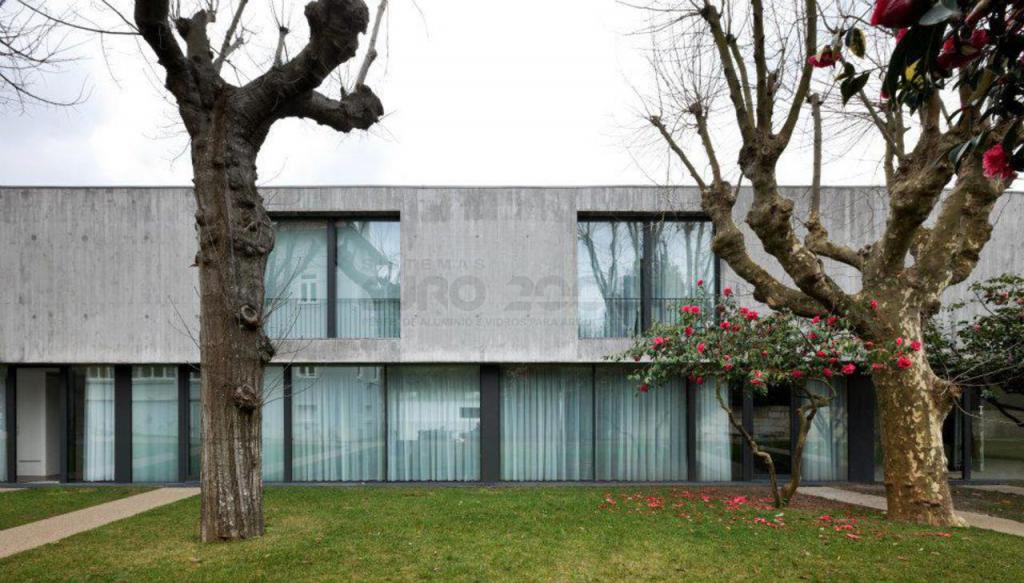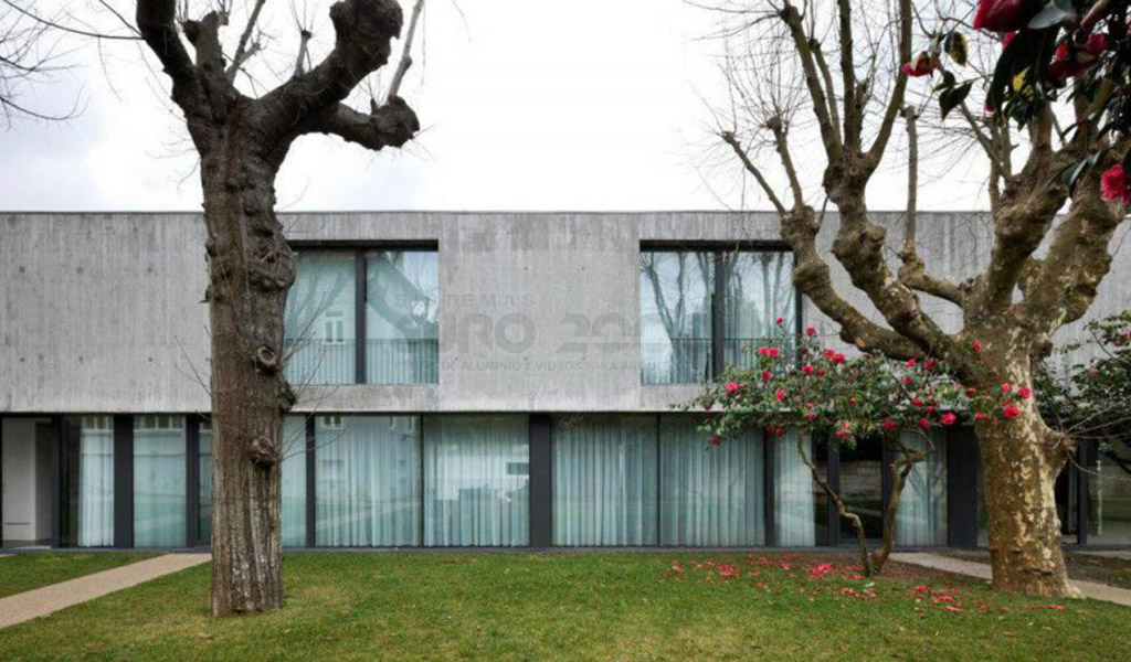 Résidences urbaines d'aisence projetées par le bureau d'architecture Serôdio Furtado & Associados qu'utilise le système de fenetre minimalist coulissant OS Euro 2000 de Sosoares avec la certification CE pour assurer l'équilibre parfait entre la simplicité, esthétique et fonctionnalité.