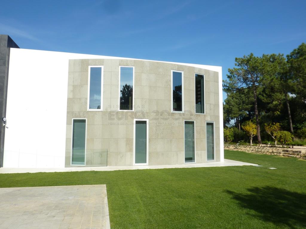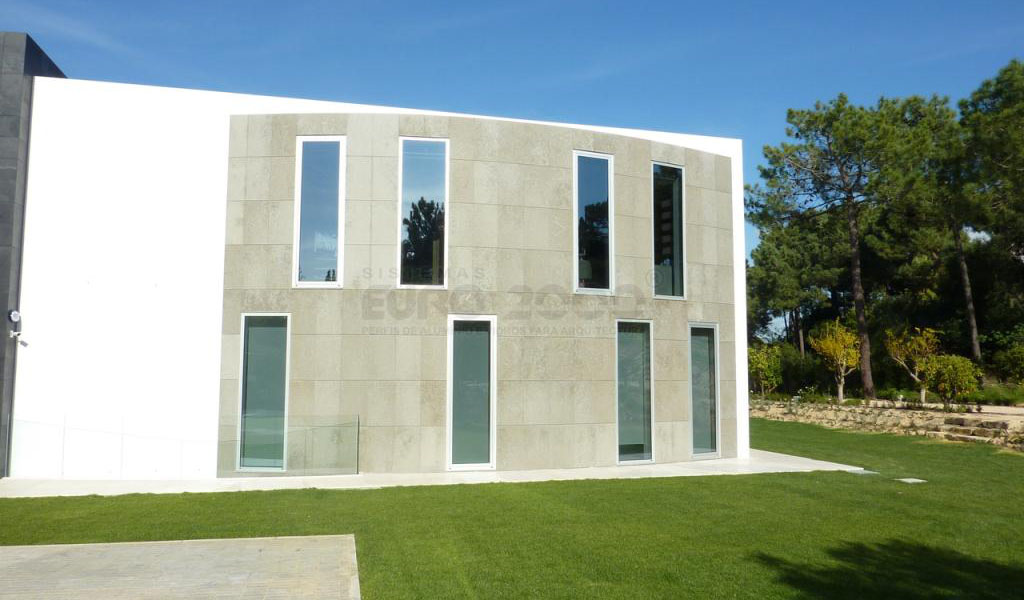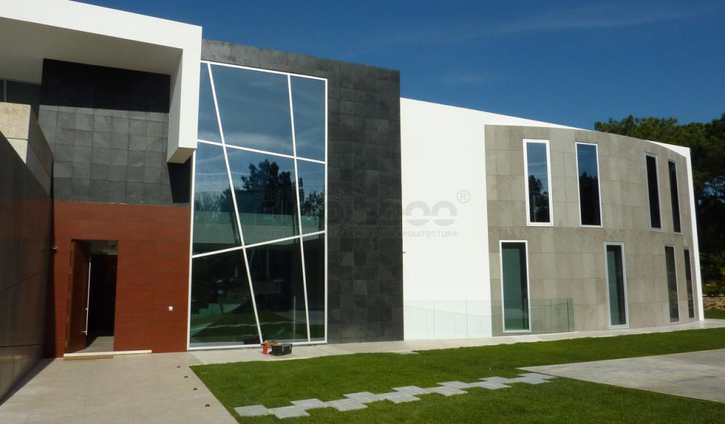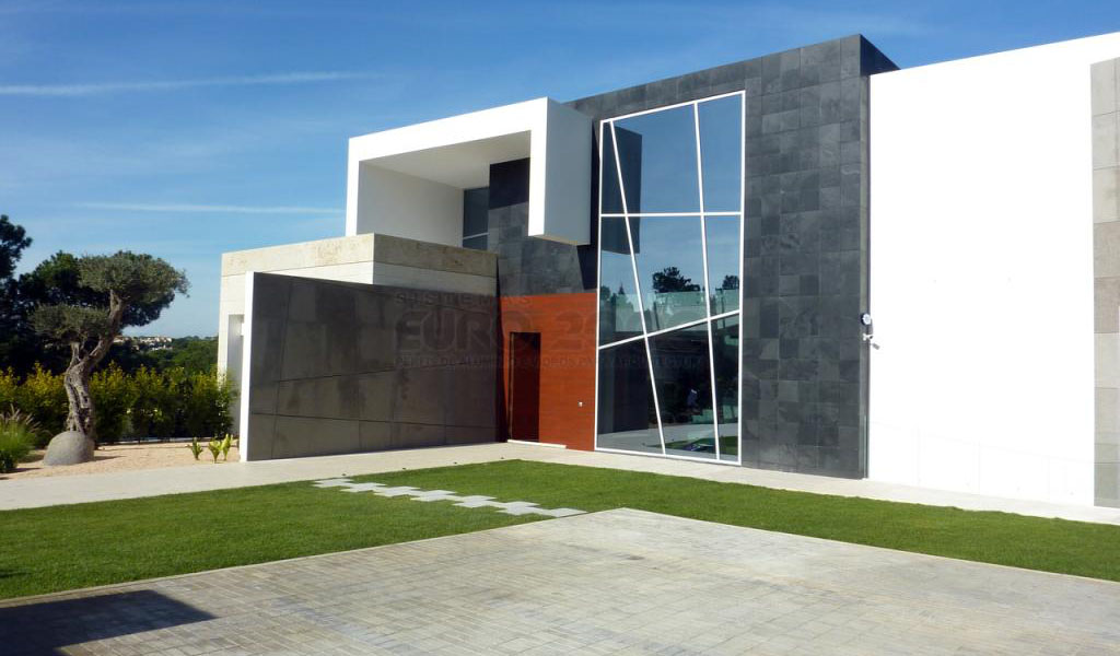 Cette résidence est située à Quinta do Lago, une destination de vacances en Algarve plus exclusives. Sosoares systèmes de façades structurelles légères sont utilisés pour optimiser la transparence du verre tandis que ses capacités énergétiques sont augmentées par le pont thermique du châssis en aluminium.