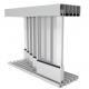 Conçu avec un seuil minimaliste à 5-rails, d'une hauteur de 12 mm, qui peut être utilisé au-dessus du sol ou encastré, vous permet d'avoir jusqu'à 5 vantaux coulissants d'un côté ou jusqu'à 10 vantaux coulissants 5 de chaque côté. Il reçoit une ferrage avec et sans serrure en acier inoxydable.