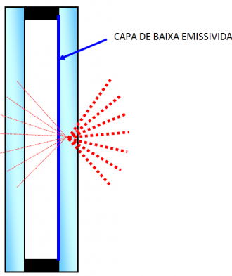 La caractéristique de faible émissivité dans les verres est donnée par le dépôt d'une couche mince transparente de matériaux métalliques sur le verre incolore. Cette couche de faible émissivité reflète les rayons infrarouges de grande longueur d'onde, qui sont responsables de la perte de chaleur.
