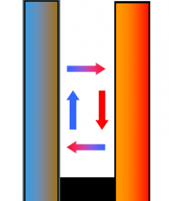 Convection - échange de chaleur prise par les courants d'air chaud qui circulent à l'intérieur de la boîte de verre.